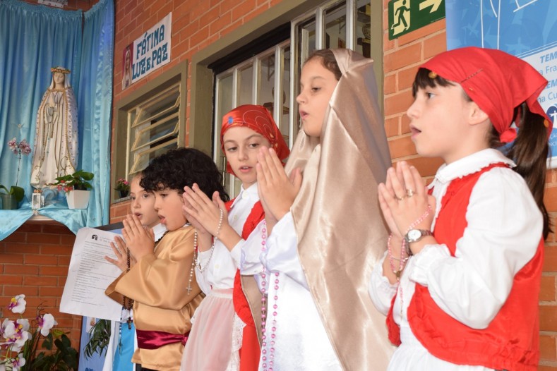 Conduzidos pela Pastoral e pela Irmã Luciana, os estudantes da Educação Infantil, Semi-Integral e Fundamental I, realizaram uma série de apresentações culturais em comemoração ao dia de Nossa Senhora de Fátima.